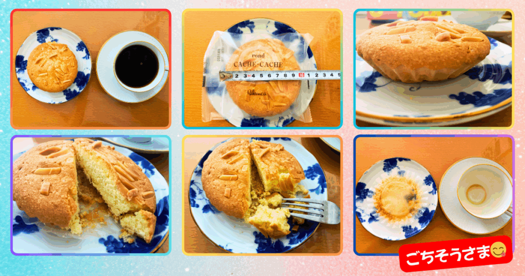 高カロリーの理由は、地元産の卵とたっぷりのバターを使った濃厚な生地に、外側にカリカリのアーモンドとザラメが贅沢にトッピングされているから‼️