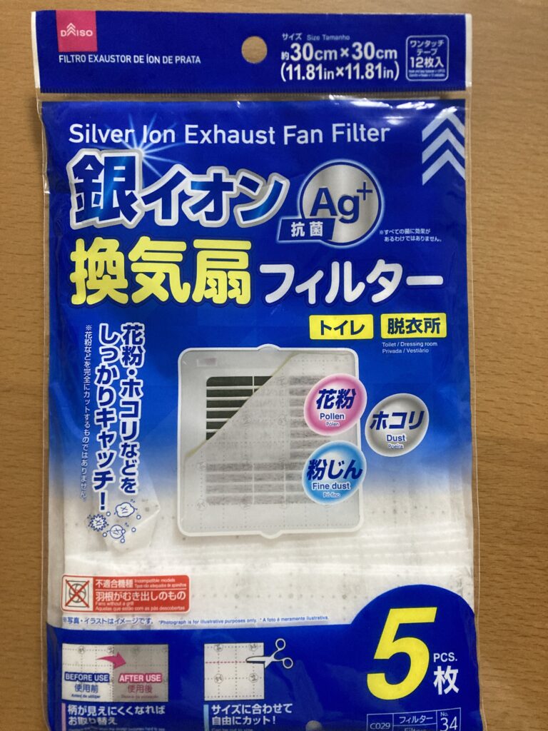 トイレや部屋の換気扇には、100均のフィルターが便利。