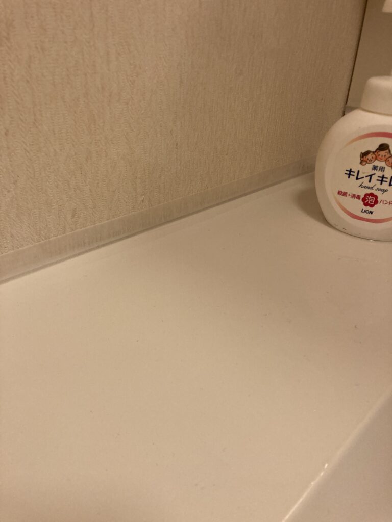 洗面所やキッチンの隙間には透明の汚れ防止テープ