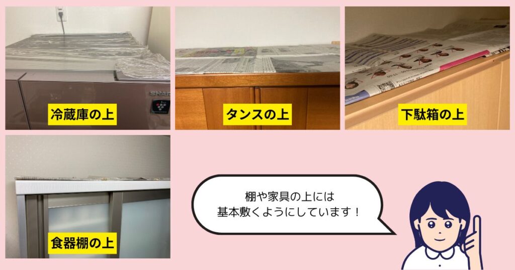 新聞紙やラップを敷いておけば、ほこりが溜まっても、取り替えるだけ👍